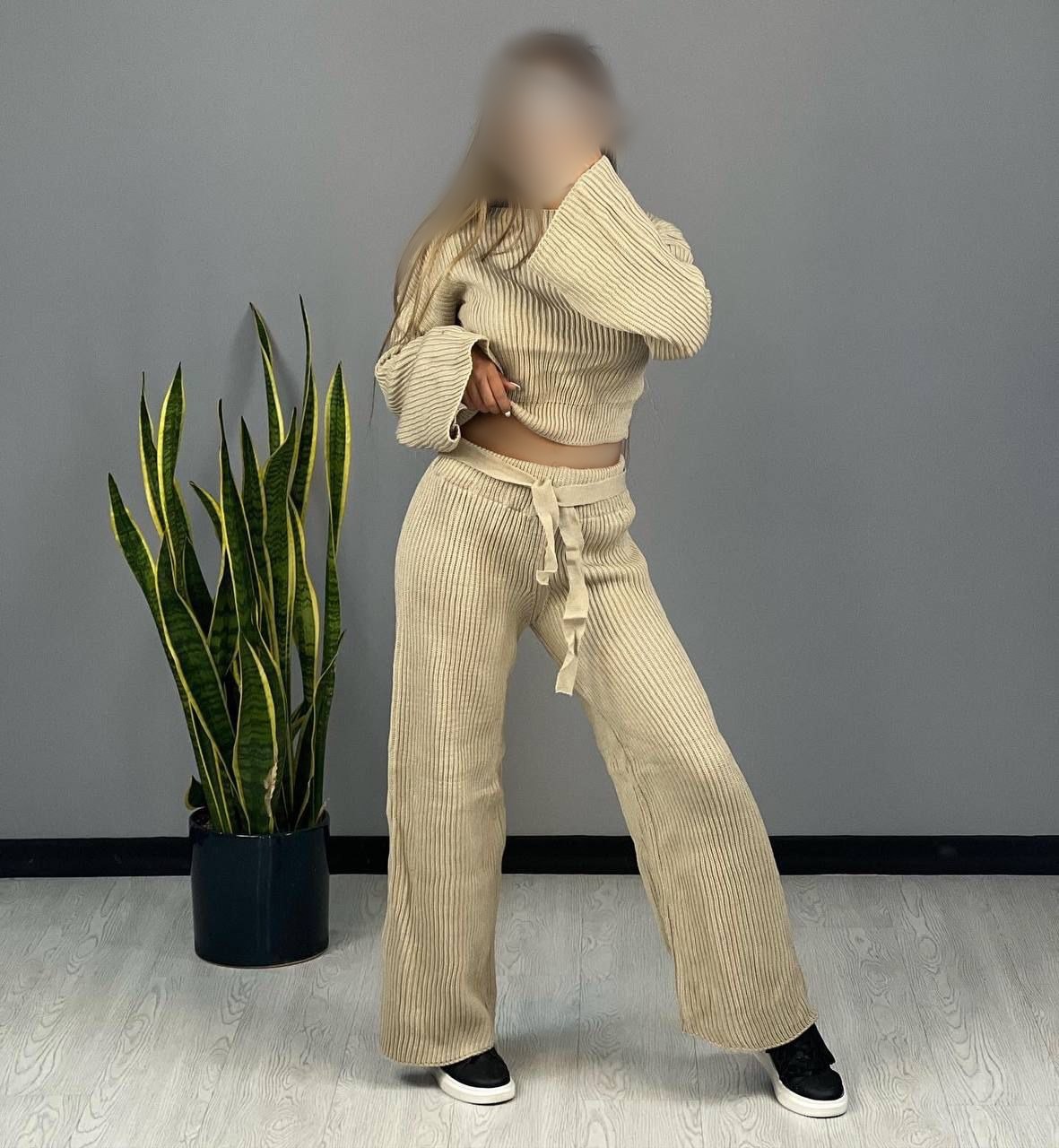 خانه ست راحتی اسپرت ست بافت کراپ شلوار